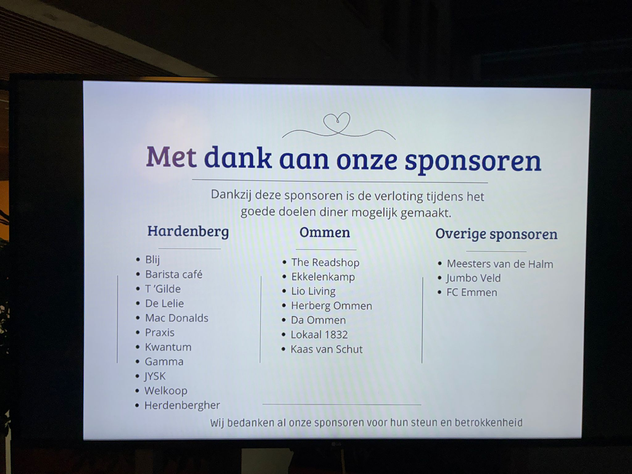 Het goede doelen diner, georganiseerd door de studenten van het Alfa-college, was uitstekend verzorgd met heerlijk eten en een geweldige sfeer. Dankzij een verloting én de veiling van een FC Emmen-voetbalshirt hebben we samen een prachtig bedrag opgehaald.